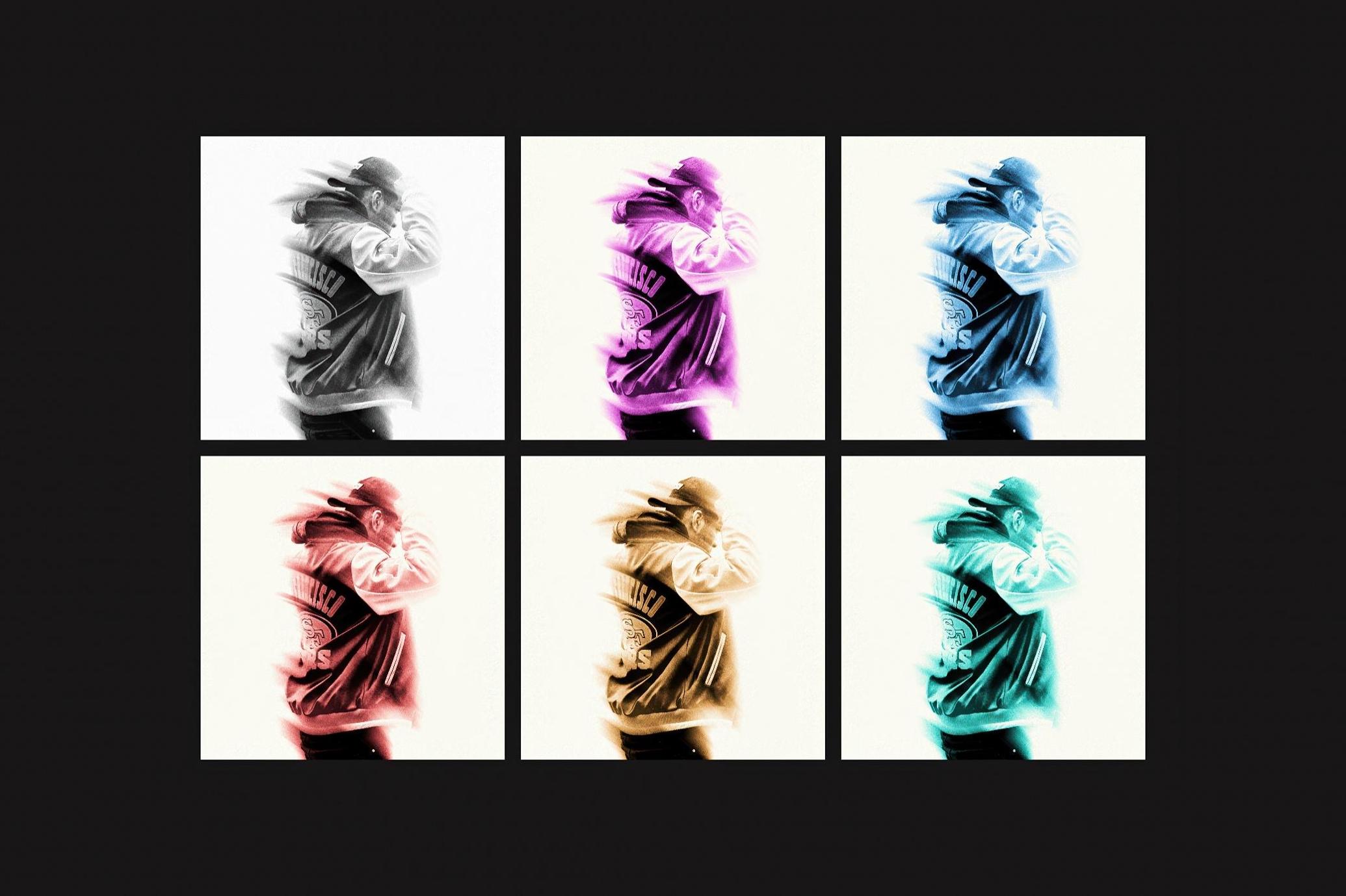This effect makes your image breathe with color — it liquefies the shapes, sending streaks of light spiraling from the edges like dye dropped in water. All of the 6 versions warp reality differently: monochrome leaks feel like vintage film burning, while the chromatic options turn portraits into fever dreams. The Smart Object lets you trap any photo in this kinetic haze — watch hair become comet trails and city lights smear into neon ghosts. It’s like a motion trapped in glass. Use it to jolt life into promo campaign visuals, album art, posters, or social media images.