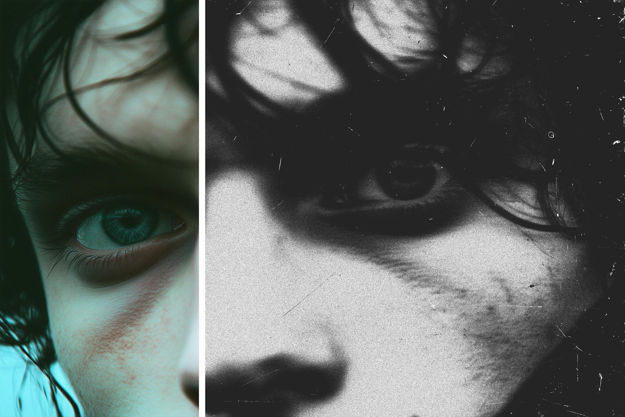 Like a still from a black-and-white arthouse film that never got made, this effect turns your images into haunting, cinematic moments. It adds gritty textures, bold contrast, and a lo-fi grain that feels like it’s been sitting in a forgotten film archive for decades. With vertical and horizontal PSD files and Smart Object support, you can drag, drop, and dramatize in seconds. Ideal for editorial portraits, zines, posters, or whatever craving that raw monochrome mood with a heavy dose of character.