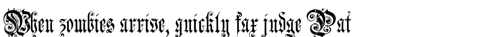 Jena Gotish pushes its capitals into full ornament mode. The character set combines dense blackletter structure with decorative inline strokes and filigree-style swashes, giving designers a toolkit for highly expressive initials and short headline phrases.