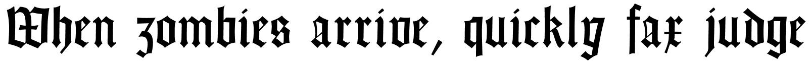 This blackletter family revives a 1936 design by Emil Rudolf Weiß. Strong vertical strokes and compact rhythm create the characteristic dense texture of Gothic letterforms, with soft curves and lively details building ceremonial headlines and expressive phrases.